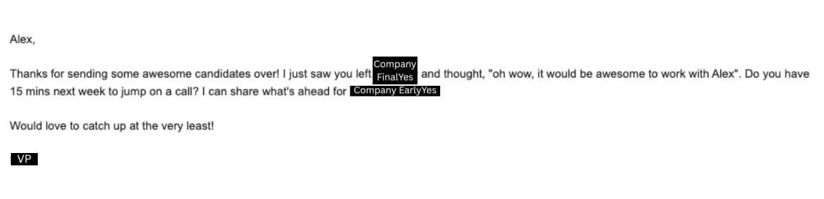 Email from EarlyYes VP when he saw on LinkedIn that I left FinalYes